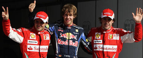 O alemão Sebastian Vettel surpreendeu os favoritos da Ferrari e, com uma volta muito rápida no final do treino classificatório deste sábado (13), conquistou a primeira pole position da temporada da Fórmula 1, para o Grande Prêmio do Bahrein. O piloto da equipe Red Bull cravou o tempo de 1min54s101 e ficou mais de um décimo à frente do brasileiro Felipe Massa, da Ferrari, que largará em segundo depois de cravar 1min54s242. Mesmo sem a pole, o brasileiro não tem do que reclamar. Ele superou por mais de três décimos o espanhol Fernando Alonso, bicampeão mundial, que largará na terceira posição com a outra Ferrari.