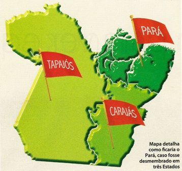 Nunca foi tão fácil esquartejar um Estado continental. Depois de aprovada a urgência para a votação dos projetos de plebiscito dos Estados de Carajás e Tapajós, os parlamentares e lideranças empresariais das duas regiões comemoram o que consideram a primeira grande vitória da iniciativa. Diante do imobilismo das forças estaduais diante do iminente esquartejamento do Estado, o movimento avança e é provável que ainda no primeiro semestre de 2011 sejam realizadas as consultas populares. A estratégia dos separatistas é fazer com que os dois plebiscitos aconteçam no mesmo período, a fim de que os eleitores das duas regiões votem maciçamente no “sim”. Caso seja criado, o Estado do Carajás terá 39 municípios, distribuídos por 296 mil quilômetros quadrados da região mais rica do Pará. A população será de 1,412 milhão de habitantes. Tapajós terá 700 mil quilômetros quadrados e população de 1,180 milhão de pessoas. Restará ao Pará a menor parte do mapa atual: 248 mil quilômetros quadrados, com uma população de 4,7 milhões de habitantes.