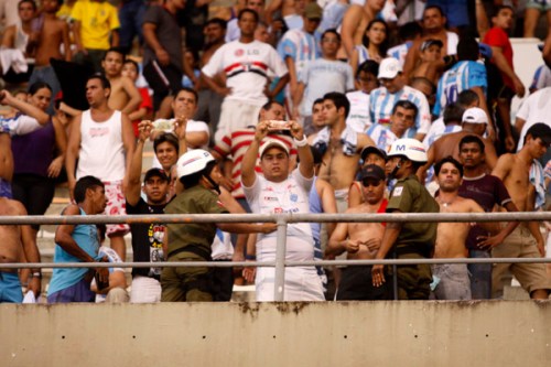 Torcida do Paissandu não se conformou com a apatia do time no segundo tempo. Depois da partida, protestou nas arquibancadas rasgando cédulas, acusando o time de ter se vendido para permitir a classificação do rival. (Foto: TARSO SARRAF)