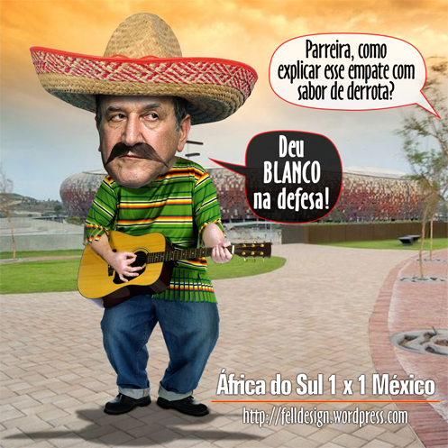 Parreira continua o mesmo. Acaba de ser anunciada a escalação sul-africana e o técnico vai usar apenas um atacante na África do Sul para a partida de abertura da Copa diante do México, daqui a pouco, no estádio Soccer City, em Johanesburgo. Enquanto Mphela será o jogador que vai atuar isolado na frente no time anfitrião, o mexicano Javier Aguirre aparenta, pelo menos no papel, que vai buscar a vitória mesmo diante dos donos da casa: Vela, Franco e Giovanni dos Santos formam o trio de ataque.