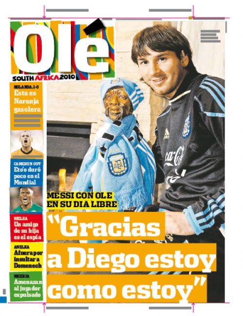 Enquanto na Seleção Brasileira os jogadores estão proibidos de dar entrevistas, mesmo quando estão de folga, a Argentina segue uma estratégia inteiramente diferente. Os treinos diários são filmados e fotografados. Maradona só proíbe a presença de jornalistas quando orienta exercícios táticos. Nas entrevistas, o bom humor prevalece. Por sinal, o Diário Olé deste domingo traz ampla matéria com Lionel Messi, mostrando como o craque vive na intimidade e suas impressões sobre a Copa. O melhor do mundo fez questão de atribuir a Dieguito sua fase atual no selecionado argentino e destaca a liberdade de que desfruta na equipe.