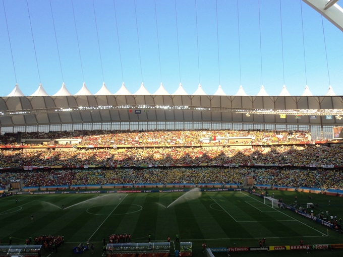 De todos os modernos estádios construídos para a Copa da África do Sul, o Moses Mabhida não é o maior, mas seguramente desponta como o mais funcional. Em minutos, o público tem acesso a suas dependências confortáveis, fato que permite também rápida evacuação (tempo máximo estimado em 20 minutos). Mas o ponto que mais chama atenção é a generosa visão do campo de jogo, que no Soccer City e no Ellis Park fica prejudicada pela altura das arquibancadas. Cabe mais gente nos dois estádios de Johanesburgo, mas os que dão o azar de ficar no último lance de cadeiras ficam a quase 40 metros de distância do gramado, o que nem sempre permite identificar jogadores e lances mais confusos. O problema afeta, particularmente, a imprensa que cobre as partidas. Cabines situadas junto ao teto desses estádios obrigam narradores e comentaristas a recorrerem diretamente aos monitores de TV para acompanhar o desenvolvimento do jogo lá embaixo. No estádio de Durban, essa limitação não existe.