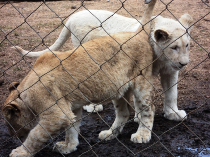 No Parque dos Leões, às proximidades de Johanesburgo, ninguém pode ficar mais que dois minutos perto dos filhotes do rei dos animais. Parece pouco, mas é tempo suficiente para fazer muitas fotos e acompanhar as explicações dos funcionários sobre o bicho. Crianças se aproximam mais que os pais e parecem se entender naturalmente com os filhotes. O Lion Park recebe, diariamente, em média, 800 visitas. Adultos pagam 110 rands para entrar. Crianças, a partir de 3 anos, pagam 80 rands. Uma vez lá dentro, o visitante pode também ver zebras, girafas, hienas, coiotes, antílopes, emas, guepardos e leões adultos (protegidos por imensas grades) em terreno que se estende por quatro mil metros quadrados de savanas. O passeio é inesquecível, impele todos a se sentirem crianças num tranquilo dia de sol no zoológico. Só não recomendo visita à butique do parque, cujos preços são tão (ou mais) ferozes quanto os felinos ali abrigados.