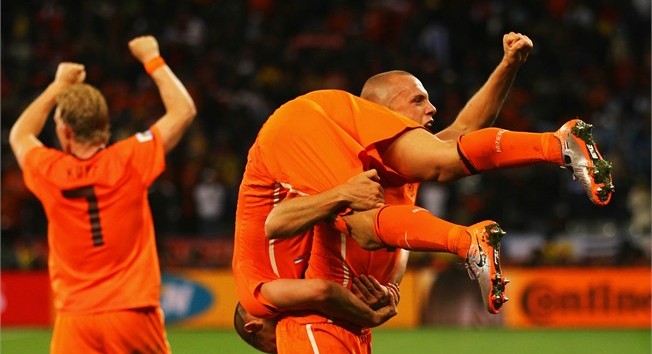 Na terça-feira, os jogadores da seleção holandesa foram presenteados com um agradável noite de folga com suas esposas depois de venceram o Uruguai no mesmo dia e se classificarem à decisão da Copa. Mas os finalistas do Mundial foram flagrados pelas câmeras da ESPN Brasil cometendo uma maldade. Depois de se despedirem de suas mulheres com beijos e abraços, Sneijder, Robben e outros esperaram todas irem em embora do hotel onde a equipe está hospedada para fazerem uma outra festa. Duas informações podem gerar preocupação para a torcida laranja. Nesta quinta, os atletas terão outra folga, desta vez sem as respectivas esposas. Mais: em 1974, na primeira final de Copa disputada pela Holanda, um escândalo teria contribuído para a derrota contra a Alemanha. Segundo o craque Johan Cruyff, os jogadores se envolveram em uma orgia na véspera daquele jogo e entraram em campo sem condições de vencerem. O fato teria levado Cruyff a abandonar a seleção de seu país.