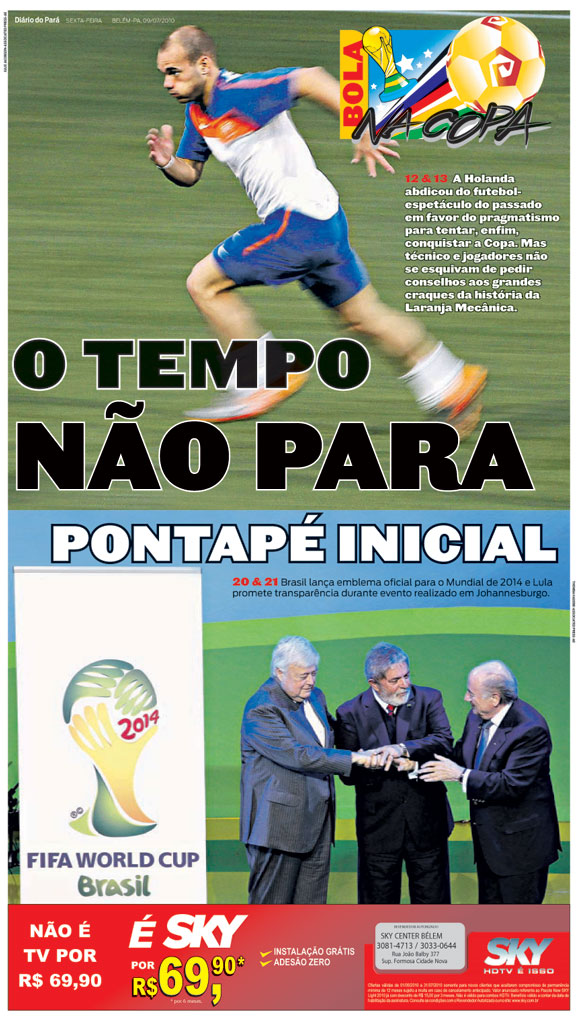 espanhola diante da chance de encerrar a longa espera por um título mundial. Atribuo essa euforia à façanha de eliminar a Alemanha, até então a grande favorita e dona de um dos times mais jovens do torneio. Jogando bem e buscando o ataque com determinação, a Fúria contrariou as expectativas e fez valer seu melhor retrospecto. Terá, porém, um adversário indigesto pela frente, que venceu todos os seus jogos até aqui e se aproxima da façanha da Seleção Brasileira em 70. Sem perder há dois anos, a Laranja usa uma tática traiçoeira, fingindo-se de morta na maior parte do tempo. Foi assim que eliminou Brasil e Uruguai. Quando menos se espera, Sneijder e Robben aparecem para matar o jogo.