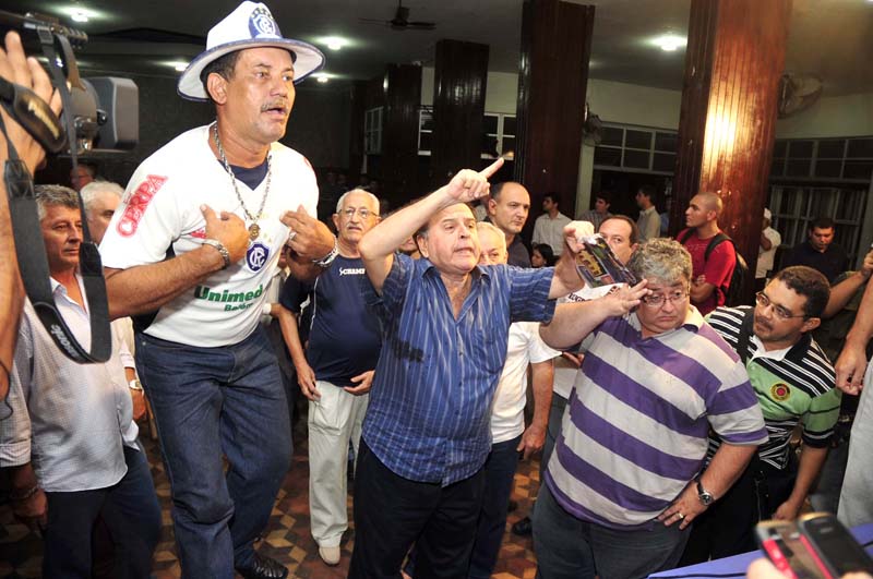 Da Almirante Barroso, o grupo partiu para a sede social, em Nazaré, onde iria acontecer uma reunião do Conselho Deliberativo, sem a presença do presidente Klautau, que viajou na manhã desta segunda-feira para São Paulo. Revoltados com o que consideram postura omissa dos conselheiros, os torcedores queriam entrar na sede para participar do encontro. Foram recebidos por conselheiros como Wilton Moreira, que tentavam evitar um tumulto. Revoltados com sua ausência, aos gritos, exigiram o afastamento do presidente. Na ocasião, receberam o apoio de grandes beneméritos que se opõem a AK, entre os quais Ronaldo Passarinho. Em função do incidente e da viagem repentina do presidente, a reunião foi transferida para data a ser marcada ainda nesta semana. (Fotos: MÁRIO QUADROS/Bola)