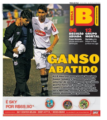 Cara, eu penso que o Ganso já era. Começa assim. De agora em diante vai ser isso sempre. Todo detonado, não vai mais jogar uma partida inteira. Escreve aí.