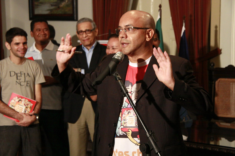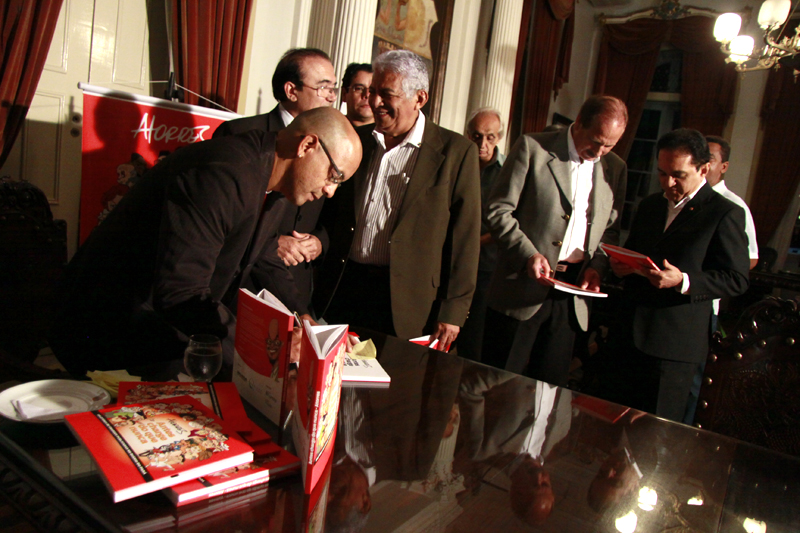 A programação foi perfeita, reunindo fãs ilustres, anônimos, companheiros de trabalho e autoridades. Tudo em torno da noite de autógrafos do livro “Antes Charge do que Nunca”, do cartunista Arnaldo Torres, o Atorres, nosso companheiro de DIÁRIO e um dos craques do traço de humor no Brasil. O evento aconteceu na noite desta terça-feira, no Palácio Antonio Lemos, sede da Prefeitura de Belém. A obra é a primeira compilação das charges publicadas por Atorres nas páginas do DIÁRIO ao longo dos últimos 15 anos. Ao todo, são 102 trabalhos, abordando todo tipo de tema – política, esportes, artes, comportamento etc. Sempre com a leitura certeira dos acontecimentos, a partir de sua conhecida verve.