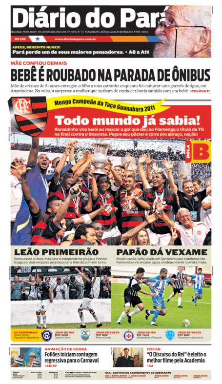notica do Flamengo do Rio de Janeiro na capa e ainda maior que as noticas de Remo e Paysandu?