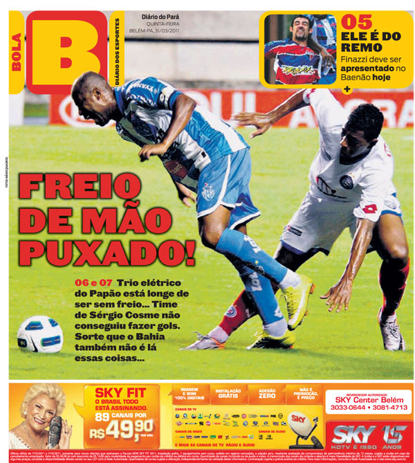 Quero expressar toda minha indignação aos dirigentes bicolores. O Paissandu não valoriza a Copa do Brasil. É uma vergonha ver um clube com tantos títulos importantes dar apenas dois chutes a gol durante todo o jogo. Time retranqueiro, medroso, isso já vem acontecendo desde os jogos do Parazão, que, todos hão de concordar, não é mesmo parâmetro para competições nacionais. Estou revoltado, muito P… Ah se me entrevistam ao vivo ontem na rampa…