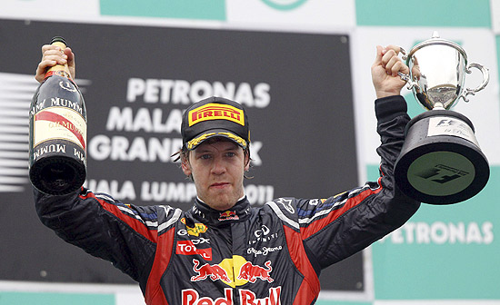 A segunda etapa do Mundial de F-1, o piloto alemão Sebastian Vettel, da Red Bull, novamente foi melhor durante toda a prova e venceu o GP da Malásia, no circuito de Sepang, neste domingo. O brasileiro Felipe Massa, da Ferrari, foi o quinto e Rubens Barrichello, da Williams, não completou a prova. Vettel foi seguido por Jenson Button, da McLaren, e Nick Heidfeld, da Renault. Com isso, obteve sua 12ª vitória na carreira e lidera o Mundial de F-1 com 50 pontos conquistados. O alemão Mark Webber (Red Bull) foi o quarto colocado. Entre os brasileiros, Massa disputou uma boa prova. Chegou a ser prejudicado pela equipe no primeiro pit stop, que se atrapalhou na troca da roda traseira, mas conseguiu se recuperar e fechou na quinta colocação. O brasileiro tem 16 pontos no Mundial de F-1 e é o sexto colocado. (Do Folhaonline)