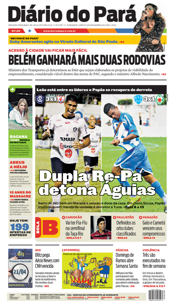 Um golaço de Marlon na cobrança de falta abriu o caminho para o triunfo remista. O diabo é que o Águia empatou quatro minutos depois, também em lance de falta. Veio, então, a única grande jogada coletiva da noite: passe de Marlon para Tiago Marabá e deste a Jailton Paraíba, que chutou rasteiro na saída de Inácio. Não satisfeito, o velocista Jailton empreendeu uma arrancada de quase 60 metros, superou marcadores e fez o terceiro gol. Não se viu esquema tático definido, nem jogadas trabalhadas. O Remo, como o maior rival, foi salvo pela iniciativa de um homem só. (Foto 1: NEY MARCONDES; foto 2: CEZAR MAGALHÃES/Bola)