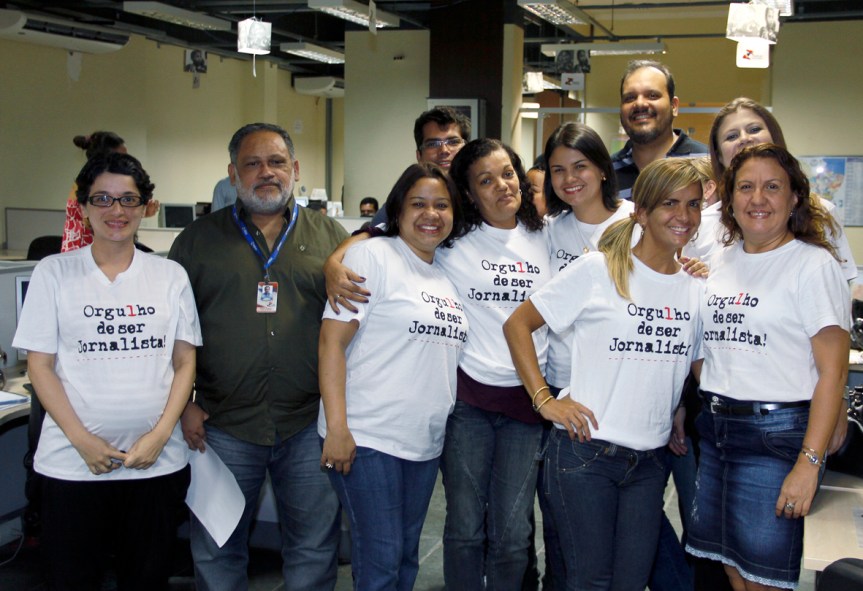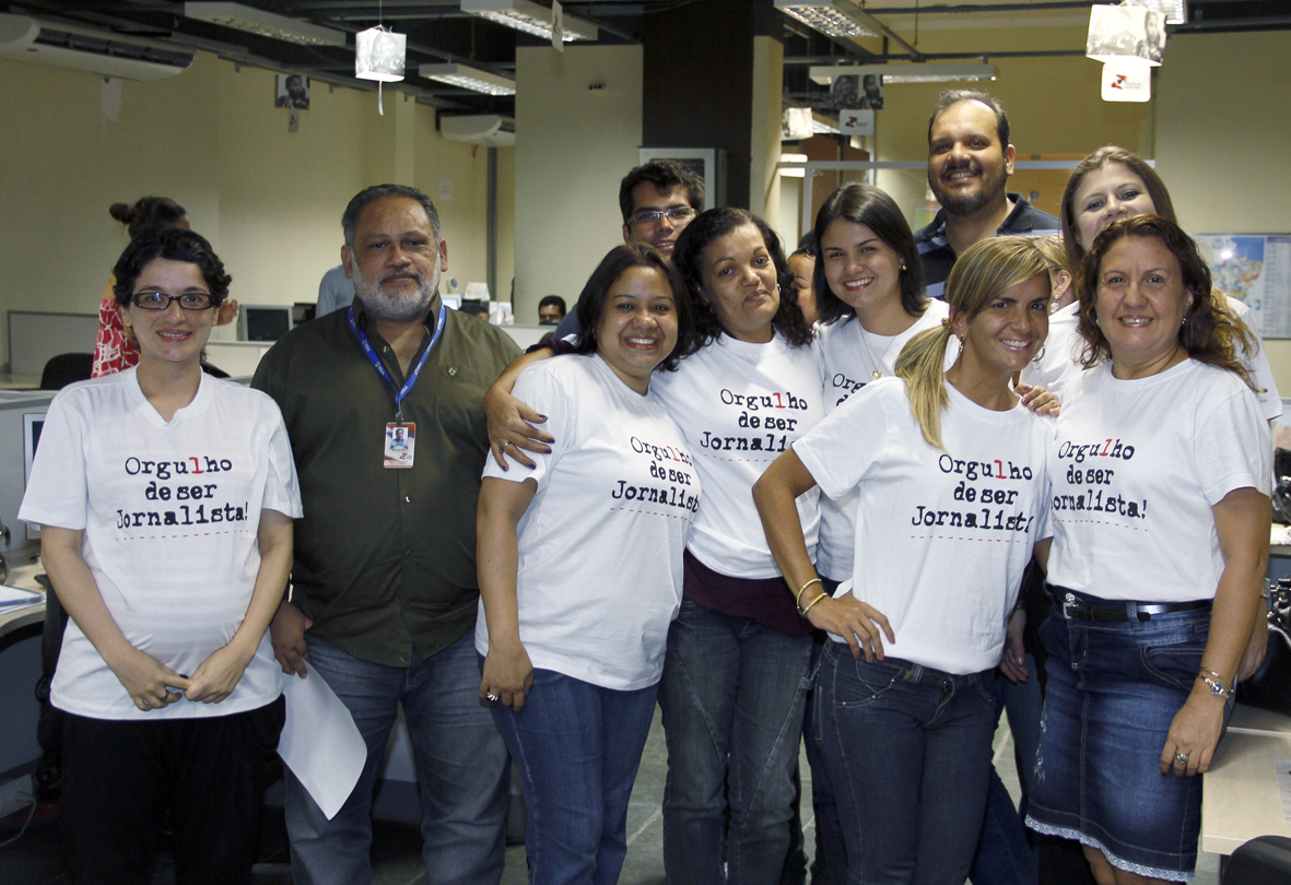 Sheyla Faro, presidente, e Daely Cunha e Nara Bandeira, integrantes da diretoria do Sindicato dos Jornalistas do Pará, visitaram a redação do DIÁRIO nesta quarta-feira para divulgar as eleições na entidade, marcadas para o próximo dia 12 de julho, das 8h às 18h. Elas representam a única chapa inscrita, denominada “Orgulho de ser Jornalista”. Ao mesmo tempo, reforçaram os temas da campanha em favor da obrigatoriedade do diploma, cuja PEC está em fase de tramitação no Congresso Nacional. No registro de Ney Marcondes, na redação, Márcia Carvalho, este escriba baionense, Sheyla Faro, Aline Brelaz, Bruno, Nara Bandeira, Syanne Neno, Daely Cunha, Luiz Flávio e Esperança Bessa.