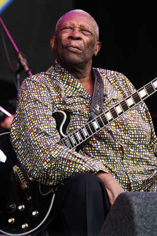 Pose majestosa do Rei do Blues BB King num intervalo de seu show no festival de Glastonbury, o maior do mundo no gênero. Mais de 175 mil roqueiros reunidos durante cinco dias numa fazenda no interior da Inglaterra. (Foto: Fergus McDonald – Getty Images)