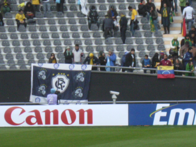 A TV mostrou seguidamente imagens das bandeiras do Remo expostas nas arquibancadas e cadeiras especiais do estádio de La Plata onde o Brasil estreou na Copa América, neste domingo. Vários torcedores estavam presentes ao jogo e, como de hábito em competições internacionais, desfraldaram as bandeiras do Pará e do Leão. As fotos são do repórter Jorge Luís Totti, enviado especial do Bola/DIÁRIO à Argentina.