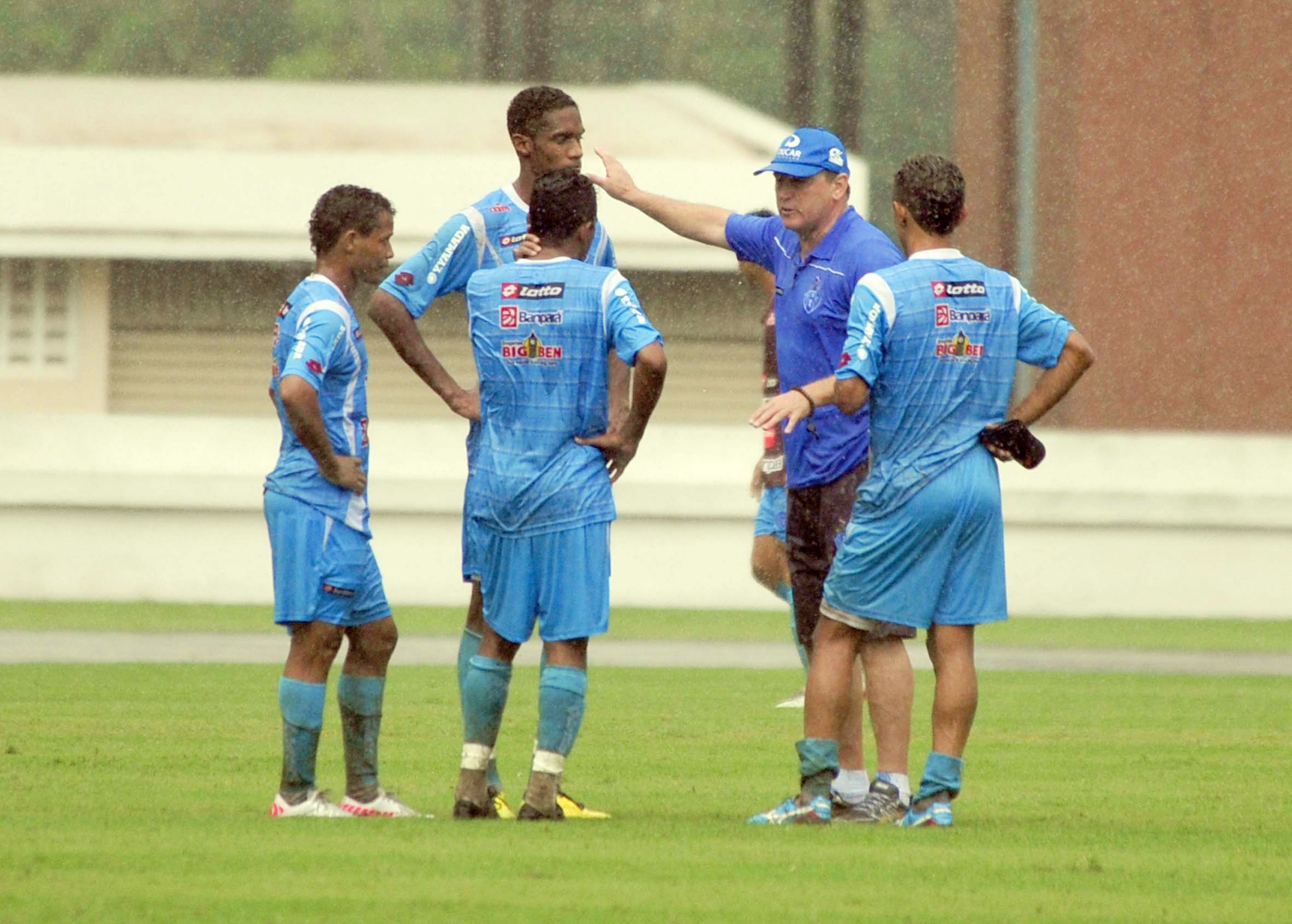 Sandro, Rodrigo Pontes e Wagner participaram de reunião, na tarde desta sexta-feira, com o presidente Luiz Omar Pinheiro e o técnico Edson Gaúcho. O trio não participou da última movimentação da equipe para o jogo contra o CRB. Sandro, que vinha mantendo bom relacionamento com Gaúcho, começou a ter problemas depois de chegar atrasado a um dos treinos da semana. Os demais jogadores estariam insatisfeitos com o atraso salarial, que atinge boa parte do elenco. Apesar dos entendimentos com o presidente, é pouco provável que os atletas sejam escalados para o jogo deste domingo. (Foto: MÁRIO QUADROS/Bola)