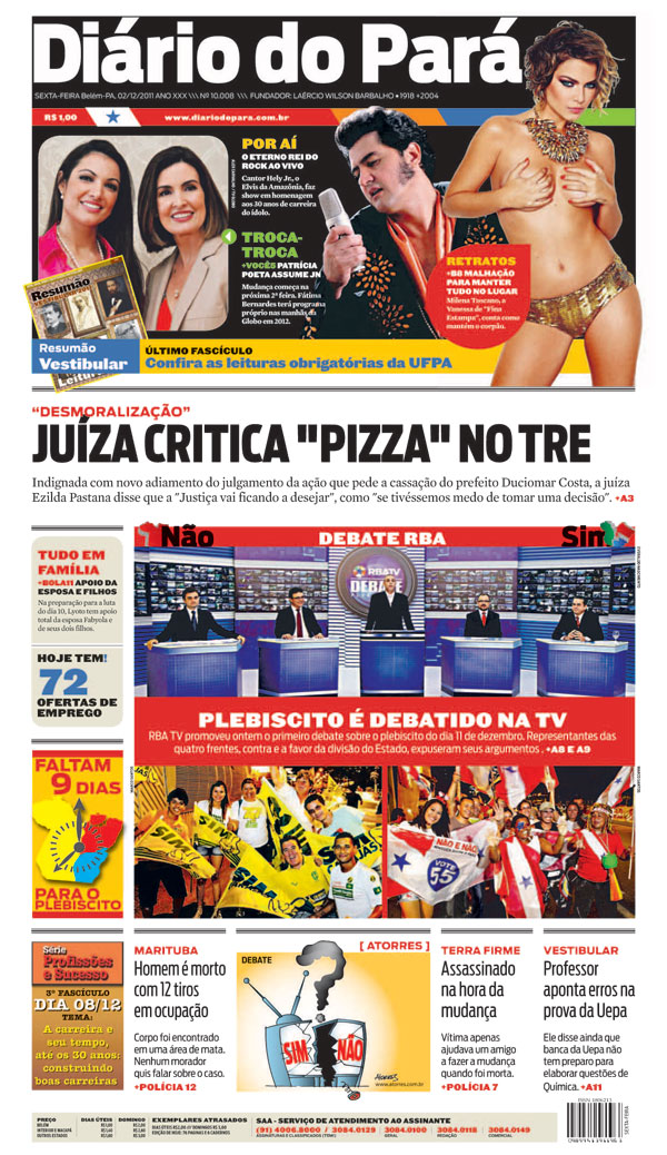 Capa do DIÁRIO, edição de sexta-feira, 2