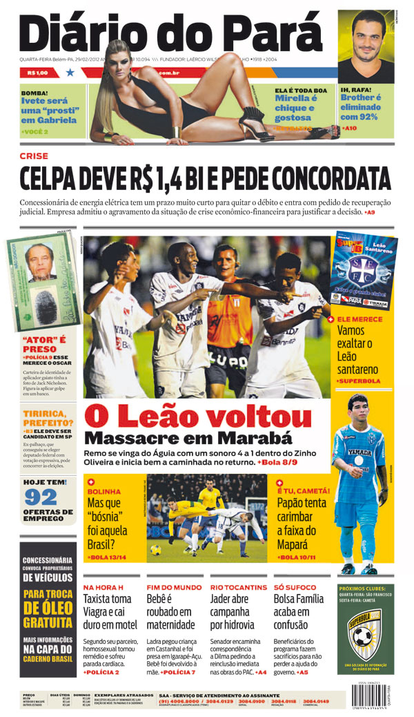 No dia 9 de dezembro do ano passado o Diário do Pará publicou a notícia que segue: