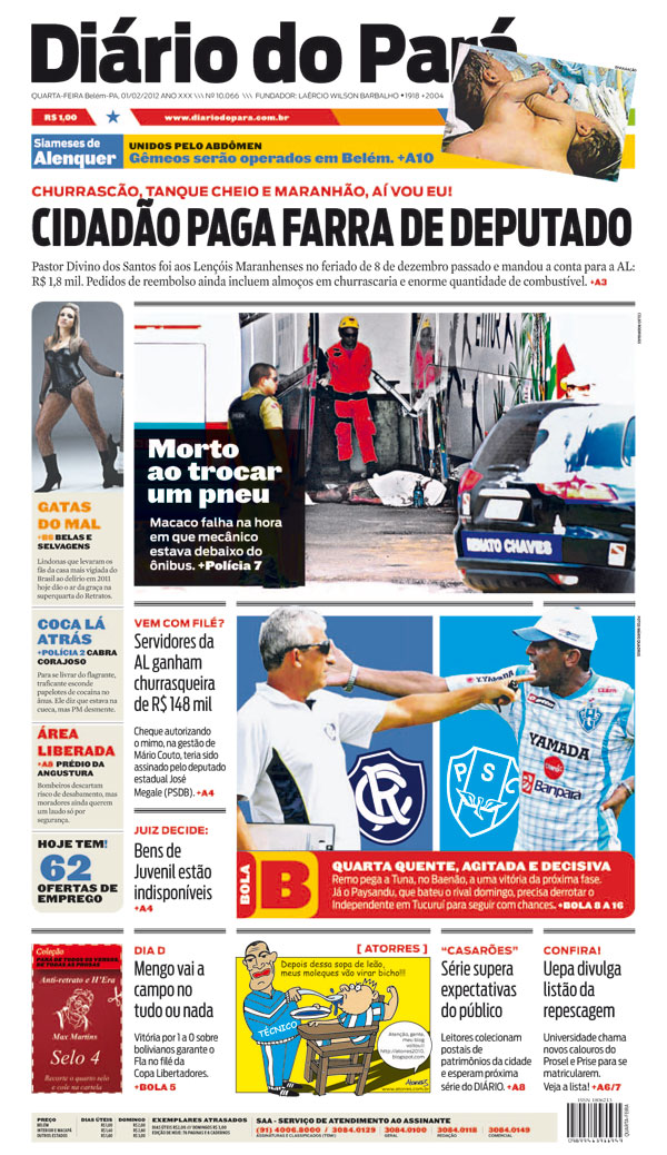 Comitê Organizador da Copa do Mundo de 2014 faz inspeção hoje na Assembléia Paraense e no estádio Edgar Proença. Amanhã, vai a Santarém verificar as condições do estádio Barbalhão. São instalações que podem vir a ser usadas como centros de treinamento para seleções estrangeiras. Espécie de bombom de consolação para a capital ridiculamente esnobada do banquete da Copa por força dos intere$$es da insaciável dupla Teixeira-Havelange.