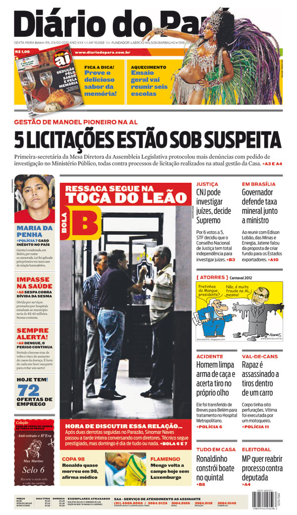 Capa do DIÁRIO, edição de sexta-feira, 03