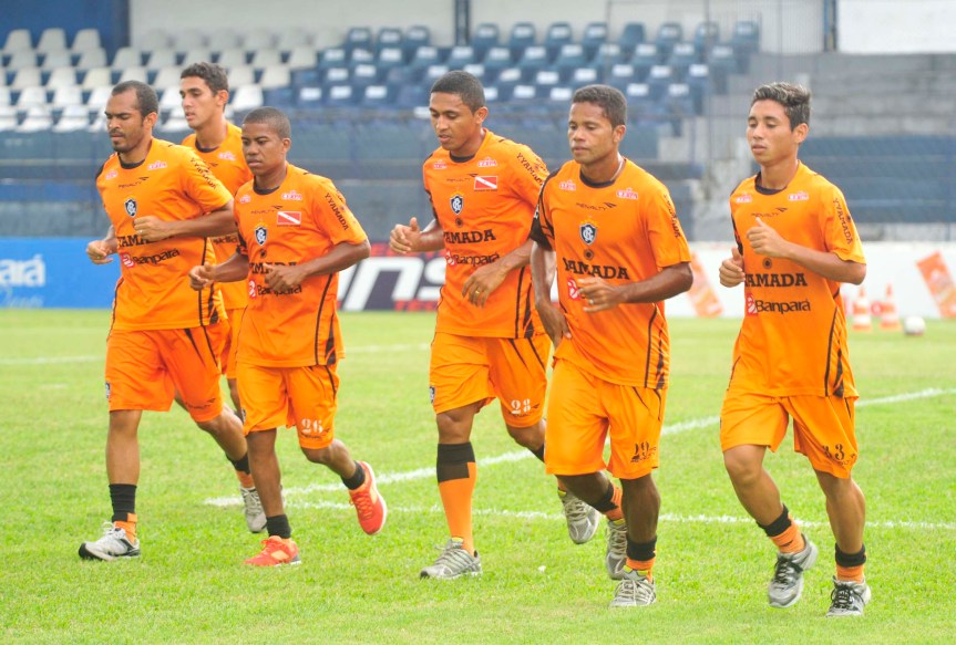 Time titular do Remo no coletivo desta sexta-feira no Baenão: Adriano; Balu, Diego Barros, Igor João e Panda; Felipe Baiano, Adenísio, Betinho e Cassiano; Fábio Oliveira e Marciano. Sinomar Naves dá a entender que vai manter os jogadores que indicou ao clube até como maneira de provar que não aceita interferência dos dirigentes. Tiago Cametá, que jogou bem contra a Tuna, está fora da lista de jogadores relaionados para o jogo contra o São Francisco, assim como Jaime e Reis. (Foto: MÁRIO QUADROS/Bola)