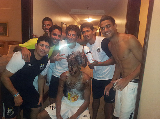 O atacante Neymar comemorou seu aniversário de 20 anos junto aos companheiros de Santos, concentrados desde sábado em hotel de Presidente Prudente. Do lado de fora, onde várias fãs passaram o dia, houve gritaria e um coro de “parabéns a você” por volta da meia-noite. Nos primeiros minutos de domingo, quando Neymar completou 20 anos, Paulo Henrique Ganso publicou foto em seu Twitter onde o amigo aparecia sentado e besuntado de chocolate e farinha. “Parabéns, show man!”, escreveu Ganso. Em seu Twitter, Neymar também celebrou e agradeceu até aos inimigos.