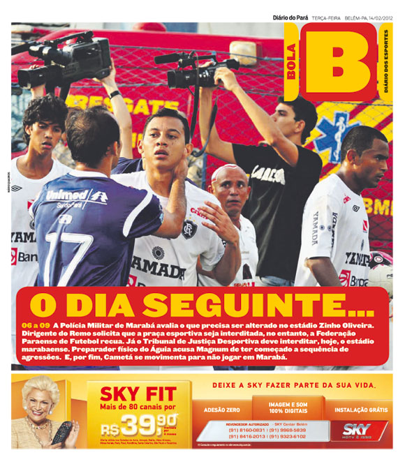 Capa do Bola, edição de terça-feira, 14