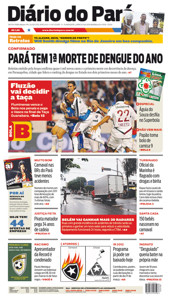 Capa do DIÁRIO, edição de sexta-feira, 24