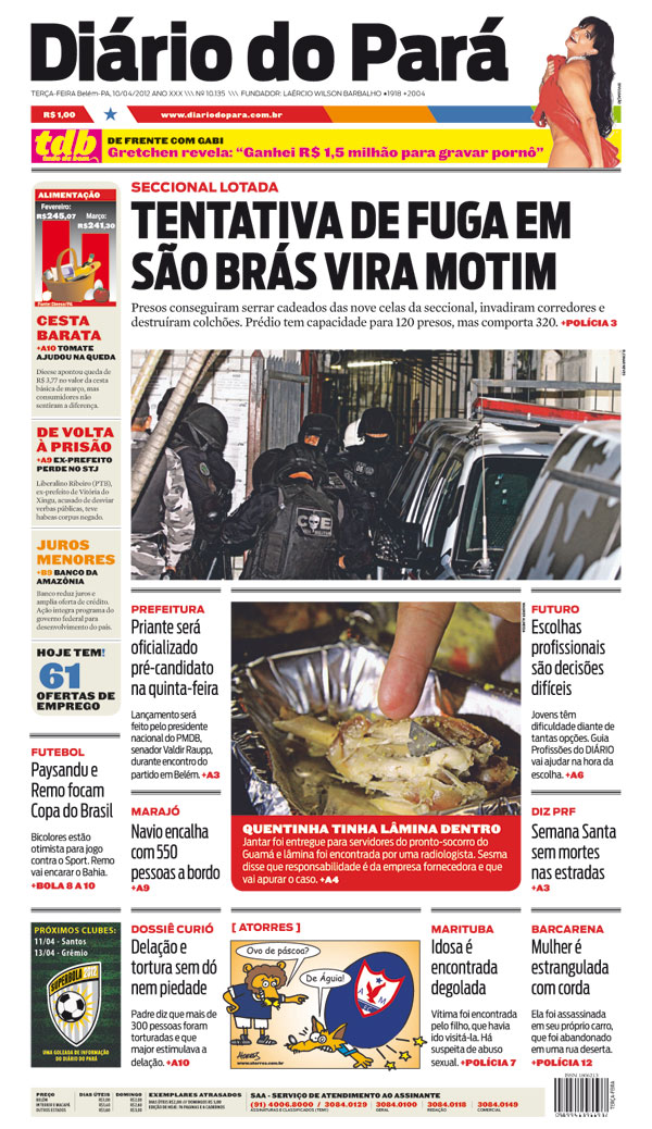 Capa do DIÁRIO, edição de terça-feira, 10