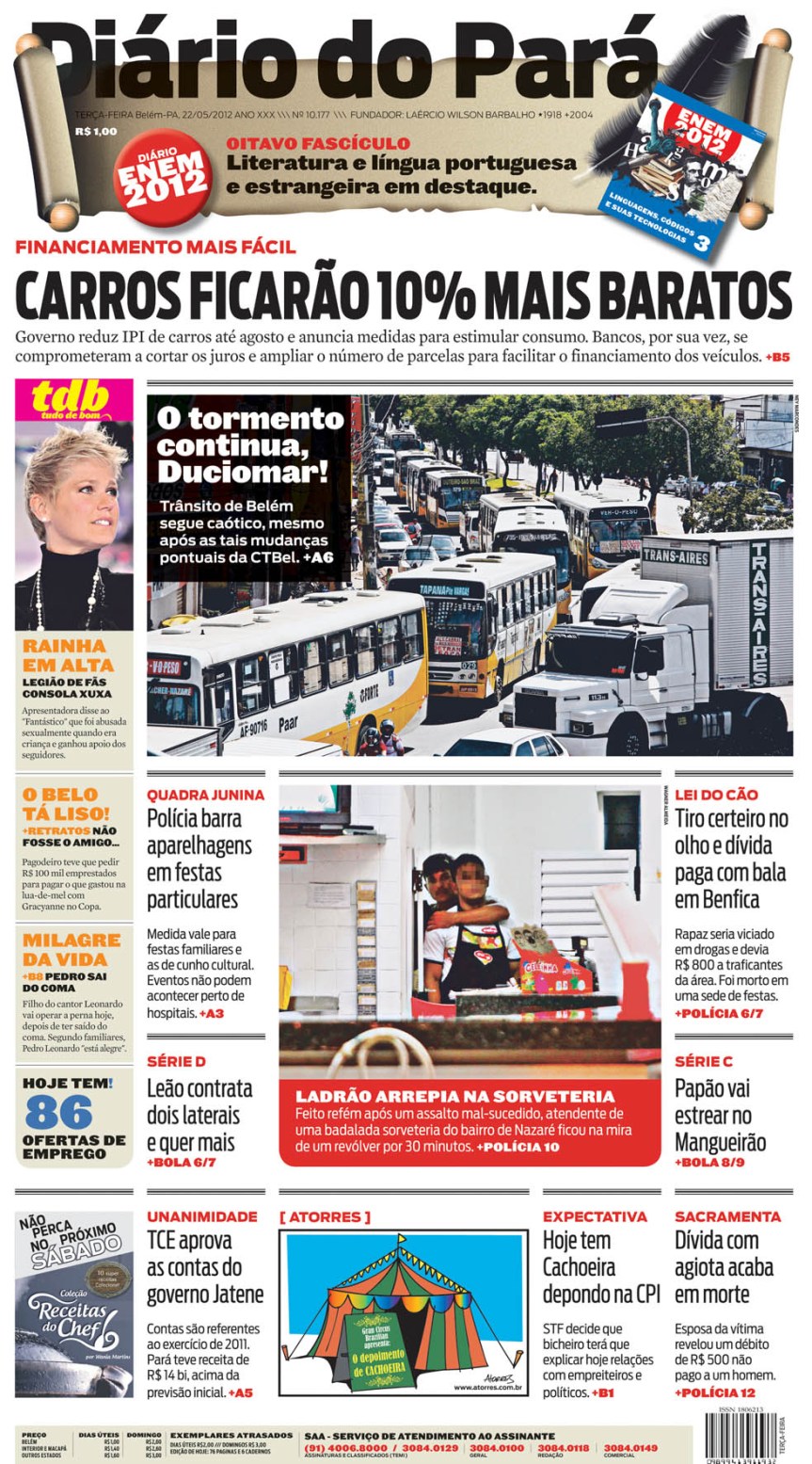 Capa do DIÁRIO, edição de terça-feira, 22