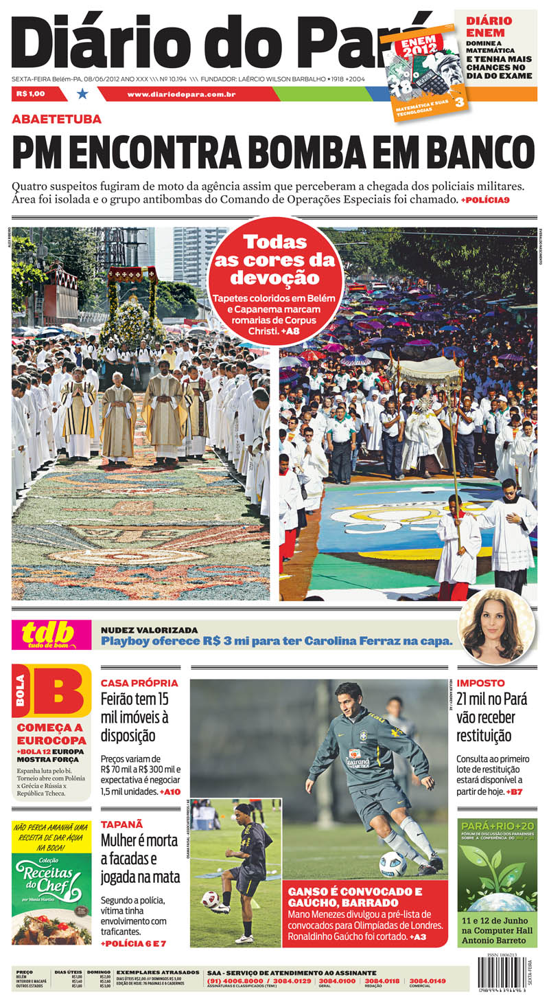 Capa do DIÁRIO, edição de sexta-feira, 08