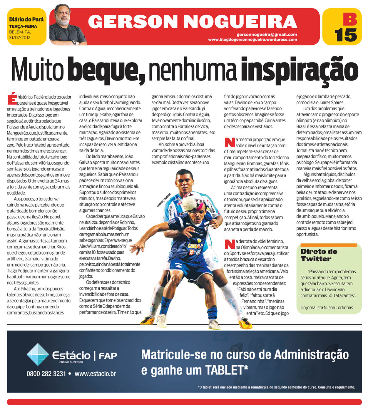 (*) Oswaldo Coimbra escreve, aos sábados, a coluna Saga Brasileira no caderno Você, do DIÁRIO.