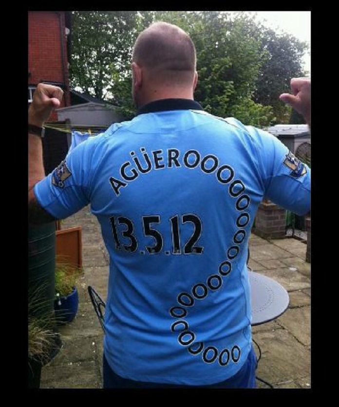 Fanático torcedor do Manchester City personalizou uma camisa do time homenageando o atacante argentino Sergio Agüero. Colocou a data da conquista do título inglês de 2012 pelos Citizens (com gol justamente do genro de Diego Maradona) e ampliou, como um eco, o sobrenome do artilheiro. Ficou uma camiseta estilosa e tão “discreta” quanto àquela usada por Sebastián Loco Abreu. (Do Blog Brasil Mundial FC)