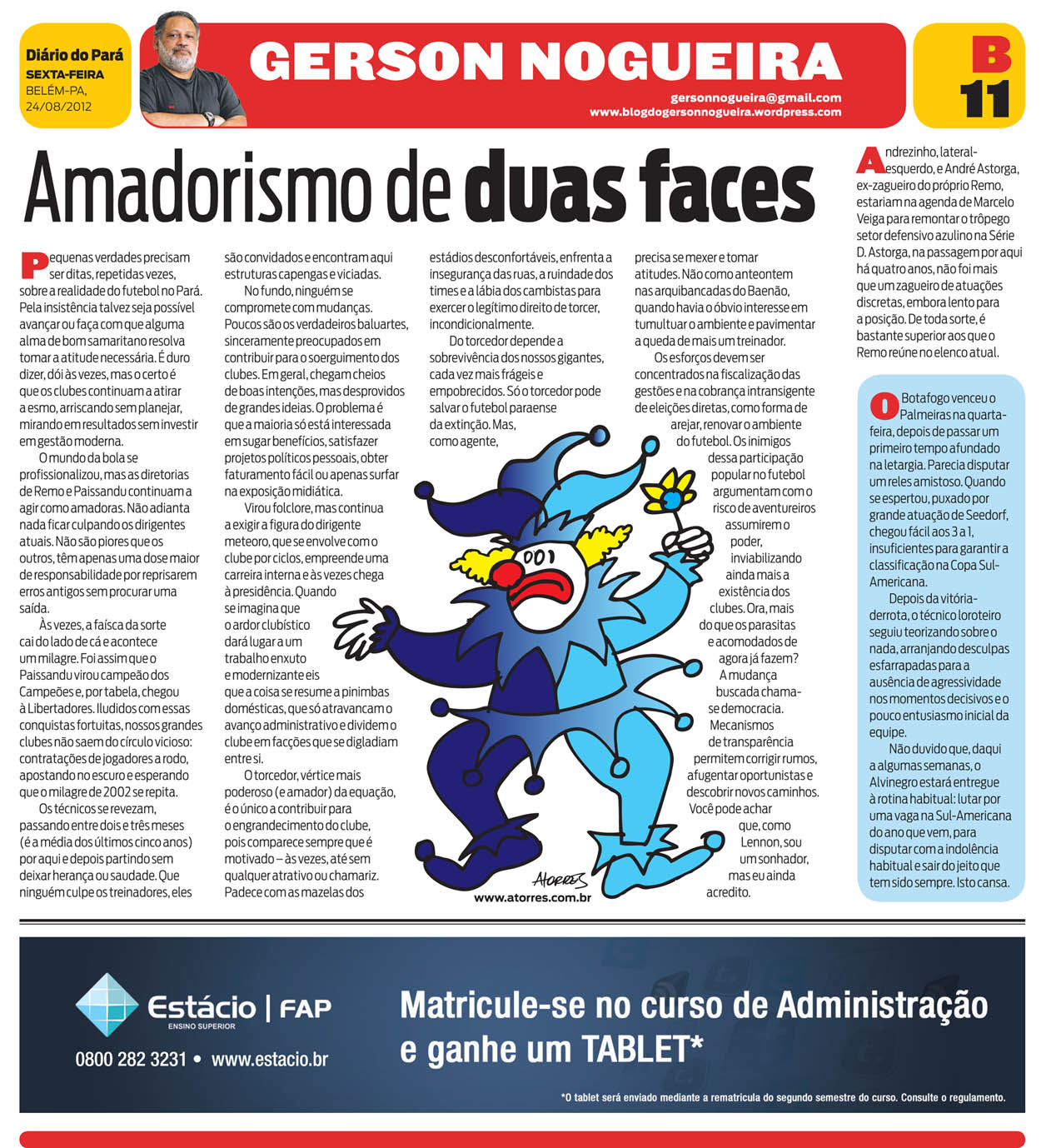 O mundo da bola se profissionalizou, mas as diretorias de Remo e Paissandu continuam a agir como amadoras. Não adianta nada ficar culpando os dirigentes atuais. Não são piores que os outros, têm apenas uma dose maior de responsabilidade por reprisarem erros antigos sem procurar uma saída.