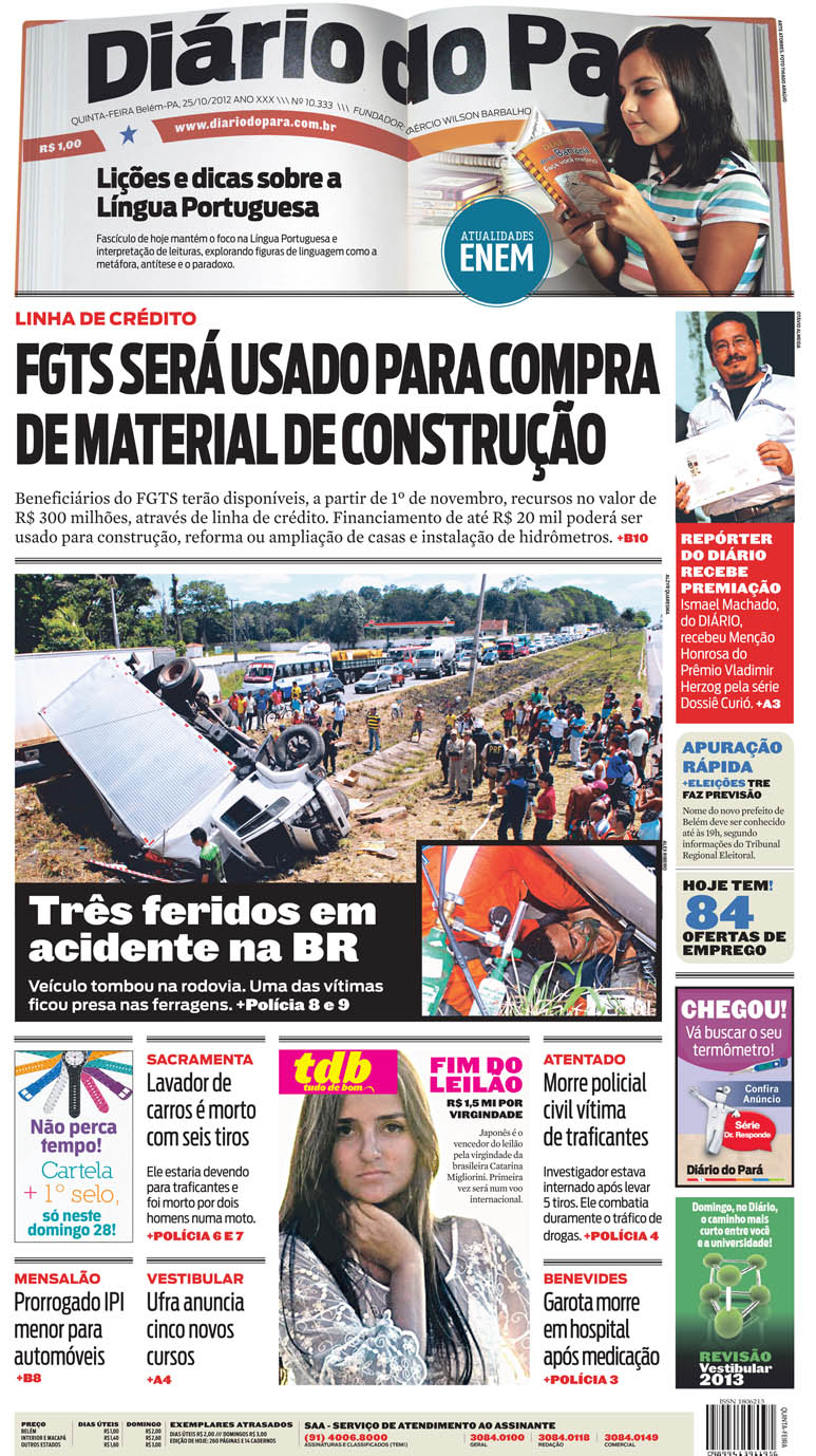 Capa do DIÁRIO, edição de quinta-feira, 25