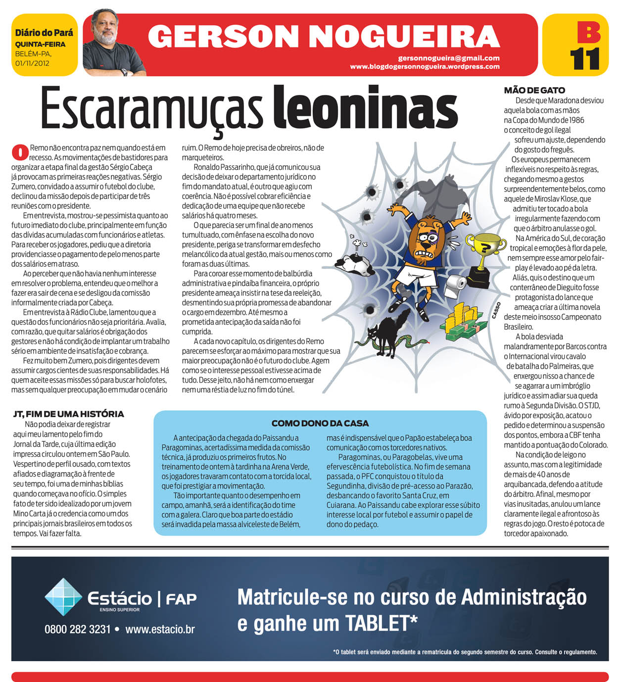 Fez muito bem Zumero, pois dirigentes devem assumir cargos cientes de suas responsabilidades. Há quem aceite essas missões só para buscar holofotes, mas sem qualquer preocupação em mudar o cenário ruim. O Remo de hoje precisa de obreiros, não de marqueteiros.
