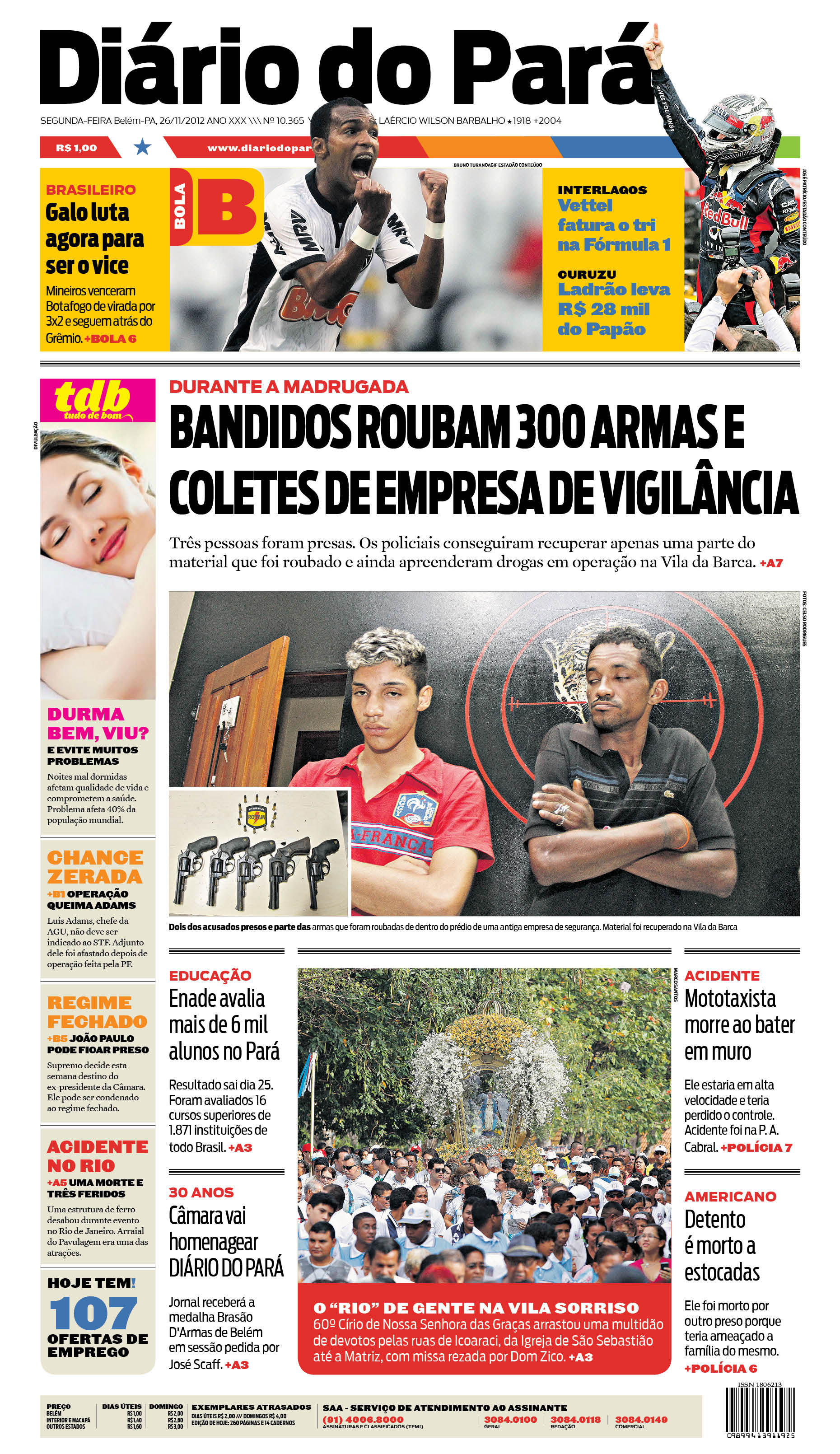 Capa do DIÁRIO, edição de segunda-feira, 26