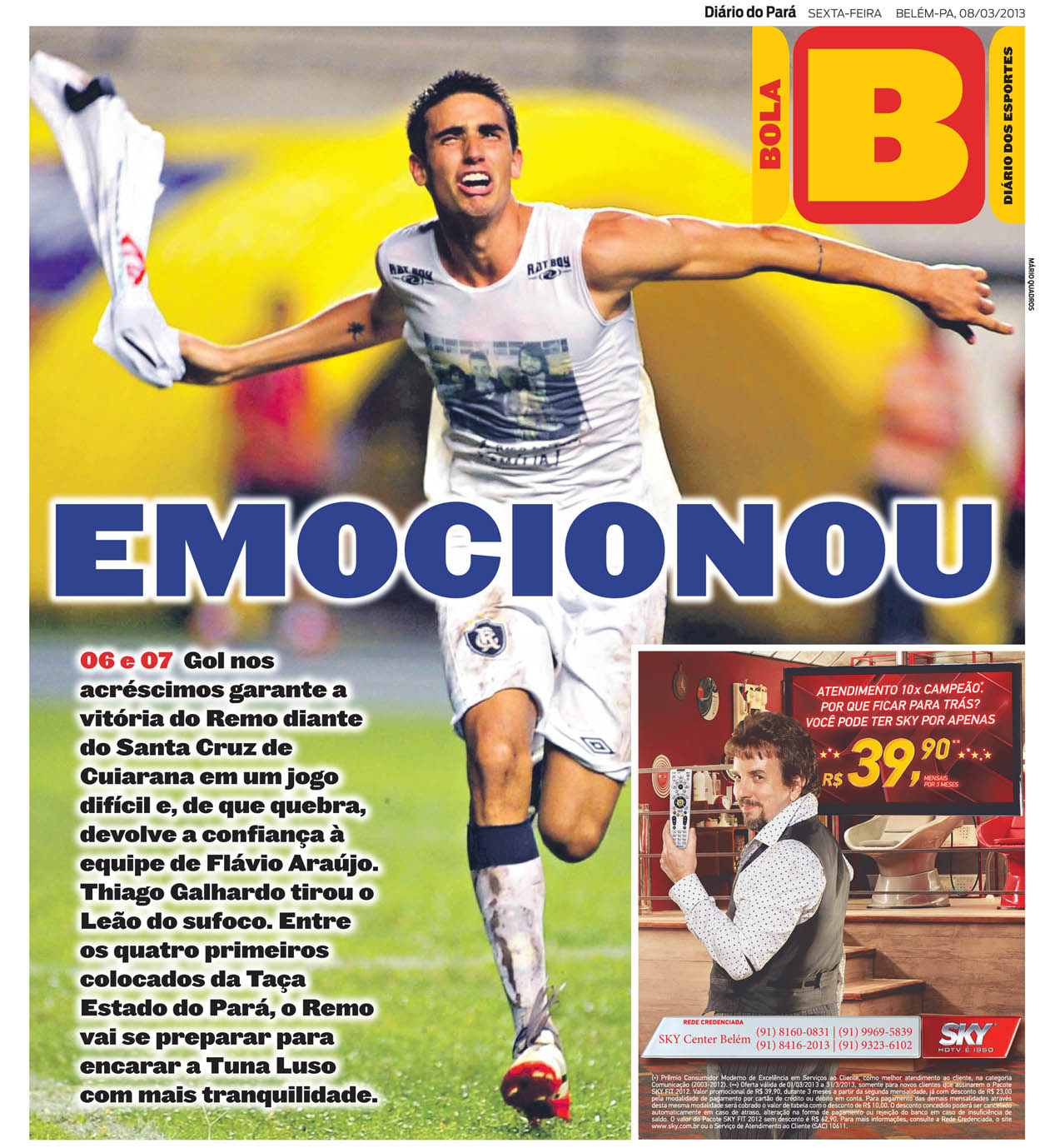 Aos 34 minutos, já na base do abafa, Val Barreto experimentou de longe e o goleiro Marcelo Bonan aceitou o chute fraco. Frango, que abateu o Santa Cruz e entusiasmou os remistas. Dali para o empate, aos 45, foi um passo. Barreto, novamente, bateu para o gol, a bola foi na trave e Galhardo aproveitou o rebote, virando o marcador em favor do Remo.