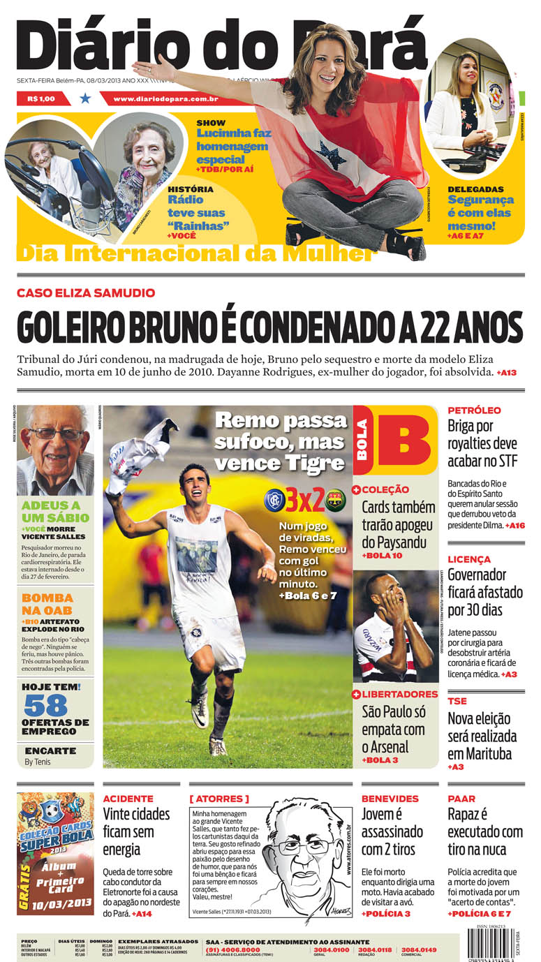 Capa do DIÁRIO, edição de sexta-feira, 08
