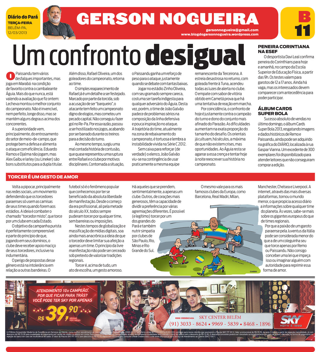 Torcer é, acima de tudo, um ato de escolha, um gesto amoroso. Há aqueles que se prendem, sentimentalmente, a apenas um clube. Outros, de corações mais generosos, têm a capacidade de dividir a preferência por várias agremiações diferentes. É possível (e legítimo) torcer por um dos grandes do Pará e também nutrir simpatia por clubes de São Paulo, Rio, Minas e Rio Grande do Sul.