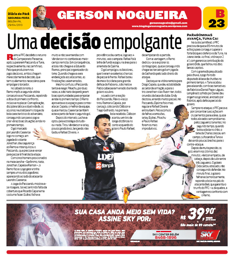 O gol marcado por Leandro Cearense logo no começo, em jogada do volante Jonathan, deu segurança ao Remo e intranquilizou o Paissandu, que precisava vencer para passar à final desta etapa.