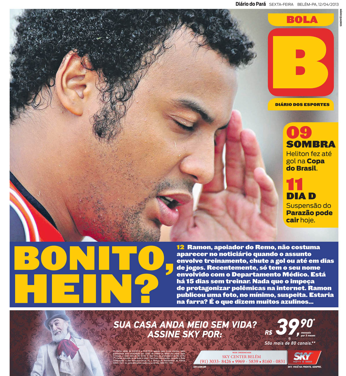 Capa do Bola, edição de sexta-feira, 12