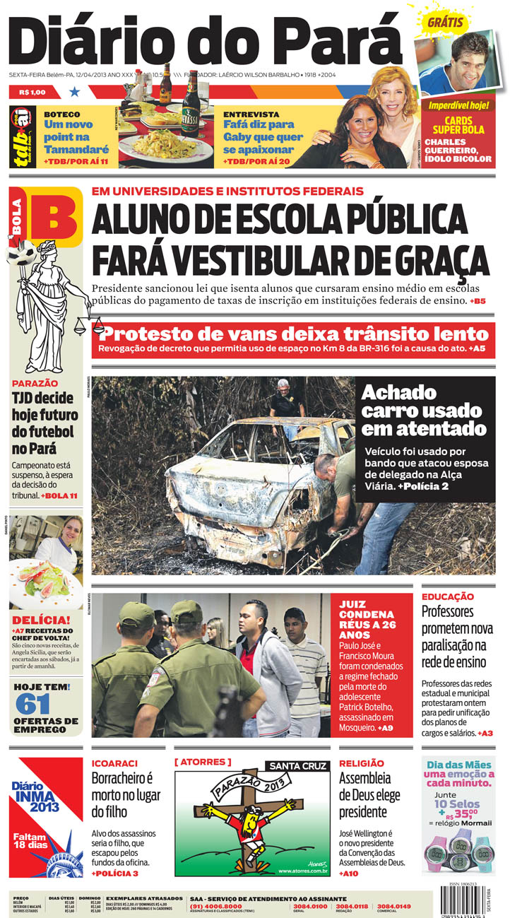 Capa do DIÁRIO, edição de sexta-feira, 12