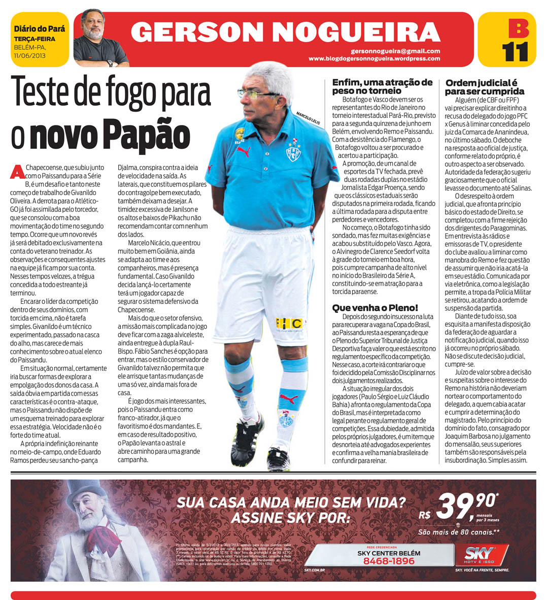 (Coluna publicada na edição do Bola/DIÁRIO desta terça-feira, 11)