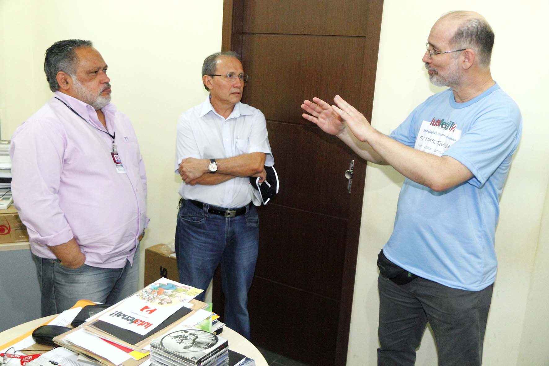 O jornalista Pedro Estevam Pomar, candidato à presidência da Federação Nacional dos Jornalistas (Fenaj) pela Chapa 2, visitou a redação do DIÁRIO na tarde desta quinta-feira. Acompanhado pelo jornalista Paulo Roberto Ferreira, 2º vice-presidente na chapa oposicionista. Pomar encabeça uma chapa que quer democratizar a Fenaj, assumindo um papel de liderança da categoria em momento dos mais críticos para a profissão.