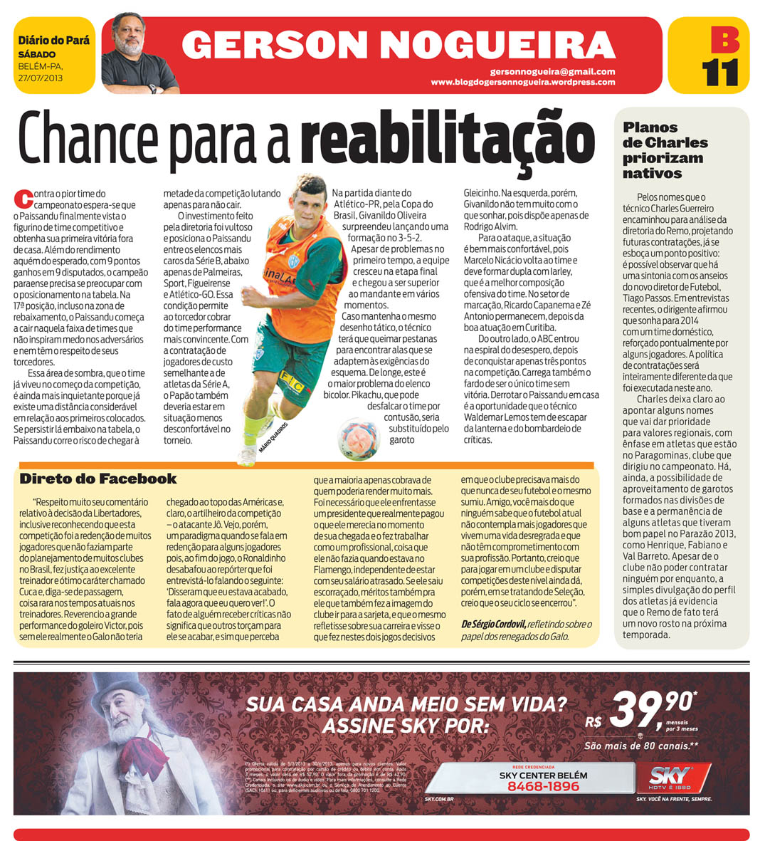 (Coluna publicada na edição do Bola/DIÁRIO deste sábado, 27)