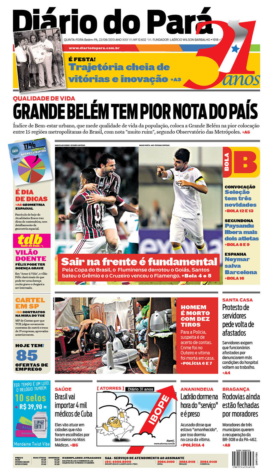 Capa do DIÁRIO, edição de quinta-feira, 22