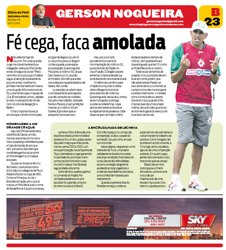 (Coluna publicada na edição do Bola/DIÁRIO desta segunda-feira, 18)