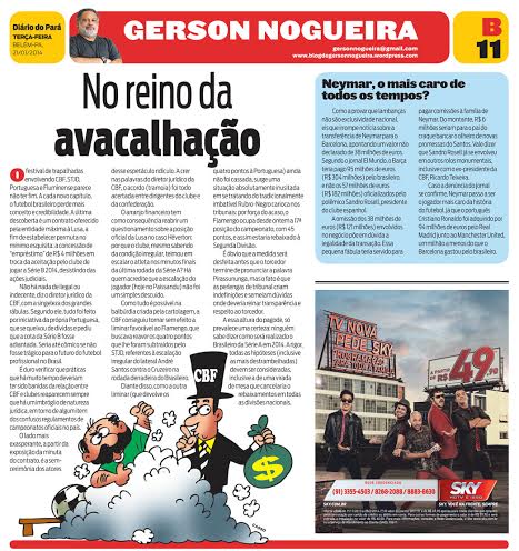 E sim, é uma zona do cacete. Mas ninguém precisa colocar mais mosca em cima. Já fede sozinho. Insuportável essa tentativa desesperada de se colocar a CBF como vilã do futebol brasileiro sendo que quem a sustenta e aceita suas sugestões são os clubes. Como no país, só está lá me representando quem EU autorizei que estivesse.