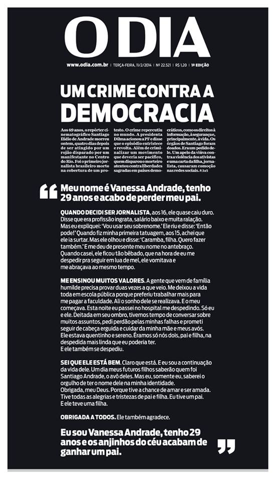 7 comentários em “Capa do DIA homenageia cinegrafista morto